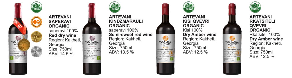 We are proud to introduce the first Organic wine from Georgia in the USA. Unique terroir red wines under the brand Artevani are made in Georgia (historic winegrowing Kakheti Region) from the organically grown Saperavi grape variety. Artevani‘s primary focus is on product quality, therefore wines are produced in limited quantities. Artevani makes organic wine with modern technology in compliance with the ancient Georgian traditions and principles of Organic Farming: